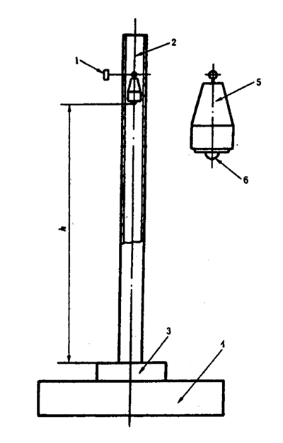 5-1kg鋼質(zhì)錘體;6- 25mm錘頭;h-墜落高度 圖G1